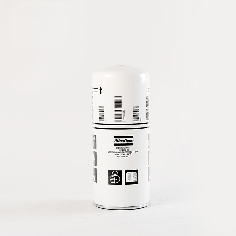Δεύτερος διαχωρισμός: Ο συμπιεσμένος αέρας που περιέχει την ομίχλη λαδιού (σωματίδια με διάμετρο 1 μικρού ή λιγότερο) διέρχεται από το μικροσκοπικό και το υλικό φίλτρου από υαλοβάμβακα του στοιχείου του φίλτρου διαχωρισμού του αερίου λαδιού για δευτερογενή διαχωρισμό. Τα σωματίδια λαδιού υφίστανται μηχανισμούς όπως η διάχυση, η άμεση παρακολούθηση και η συσσωμάτωση αδρανειακής σύγκρουσης, προκαλώντας τα σωματίδια του αιωρούμενου λαδιού στον πεπιεσμένο αέρα να συσσωρεύονται γρήγορα σε μεγάλα σταγονίδια πετρελαίου. Κάτω από τη δράση της βαρύτητας, το πετρέλαιο συγκεντρώνεται στο κάτω μέρος του στοιχείου διαχωρισμού λαδιού και επιστρέφει στο κύριο σύστημα λιπαντικού πετρελαίου μέσω της κάτω κοίλης επιφάνειας της εισόδου του σωλήνα πετρελαίου δευτερεύουσας επιστροφής, επιτρέποντας έτσι στον συμπιεστή αέρα να εκφορτώνει τον πιο καθαρό και πετρελαιοφόρο συμπιεσμένο αέρα.